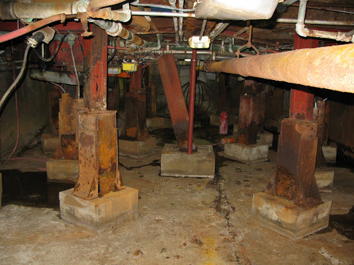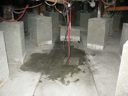 Pads, Floors and Foundations Concrete Before - rust and cracks made this basement a safety hazard. After- new concrete supports and floor, plus drainage.